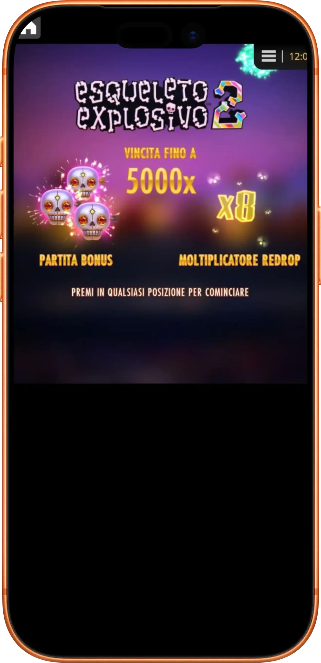 Il simbolo Scatter è rappresentato da un teschio-robot con occhi rossi e una chiave inserita nell’orecchio destro. Il round bonus con Esqueleto Explosivo 2 giri gratis (10, 12 o 14 giri) si attiva quando durante un singolo spin compaiono da tre o più Scatter in posizioni casuali.